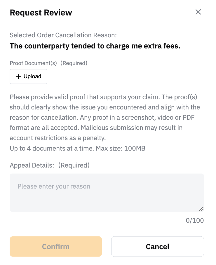 BUYERS may cancel P2P orders up to 3 times within 24 hours. If the cancellation reason is due to the Buyer Issue, and once the cancellation limit is reached, the P2P trading function will be restricted for 24 hours.