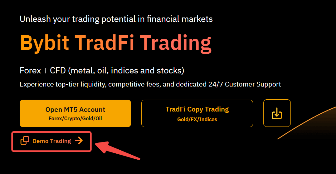 Users can activate their demo TradFi (MT5) account on the landing page via this link