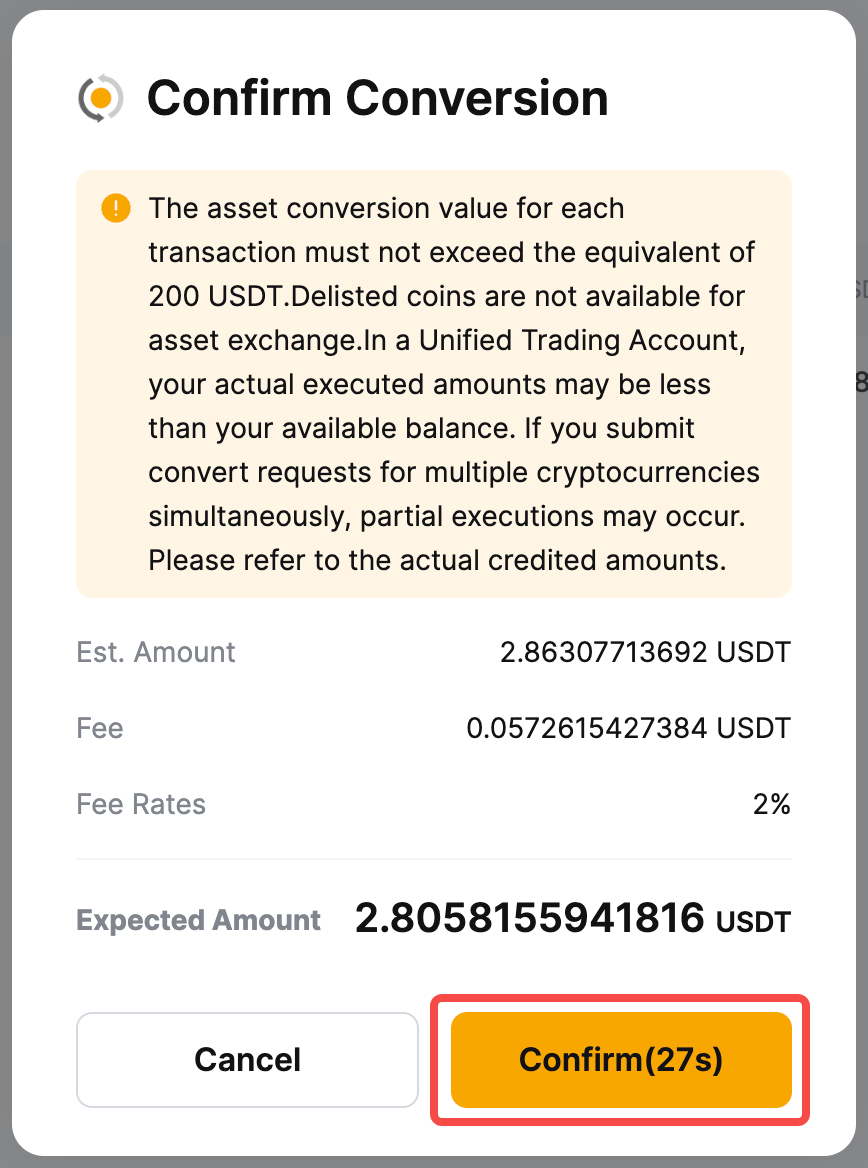 — If there is a price fluctuation of 0.5% or more during the conversion process, the conversion will not proceed.