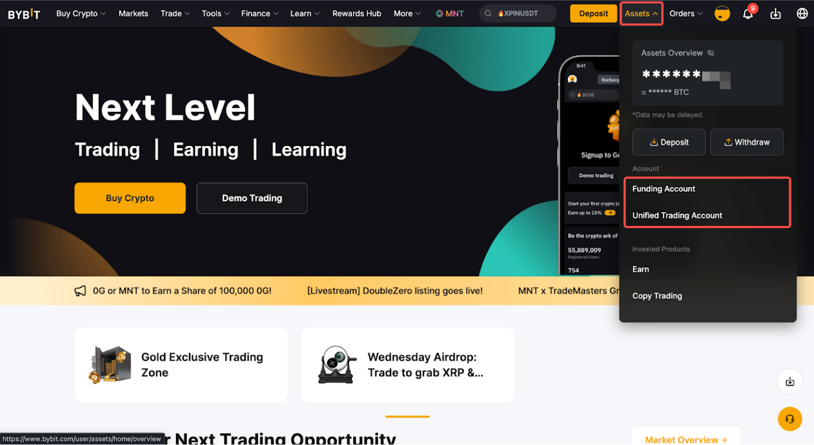 Step 1: Click on Assets Funding Account or Unified Trading Account to enter the page.