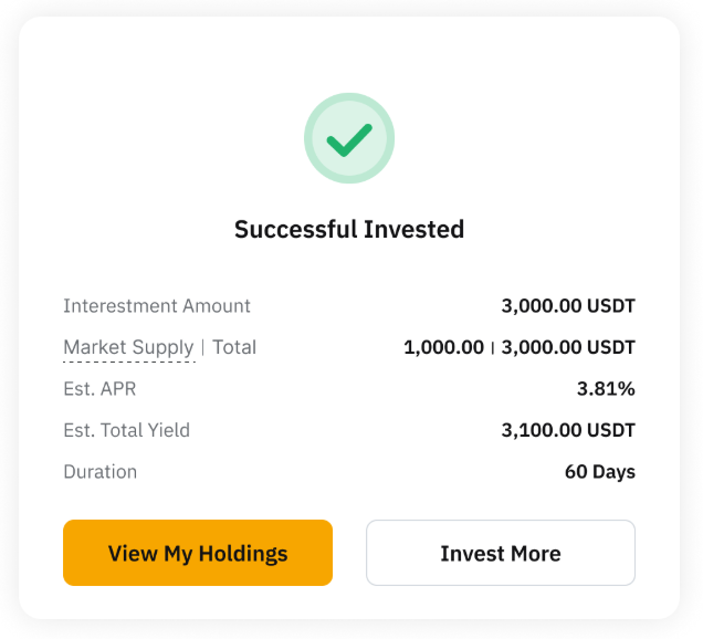 You've successfully invested in your chosen Easy Earn plan! You can click View My Holdings to view your order or click Invest More to place another order in the same plan.