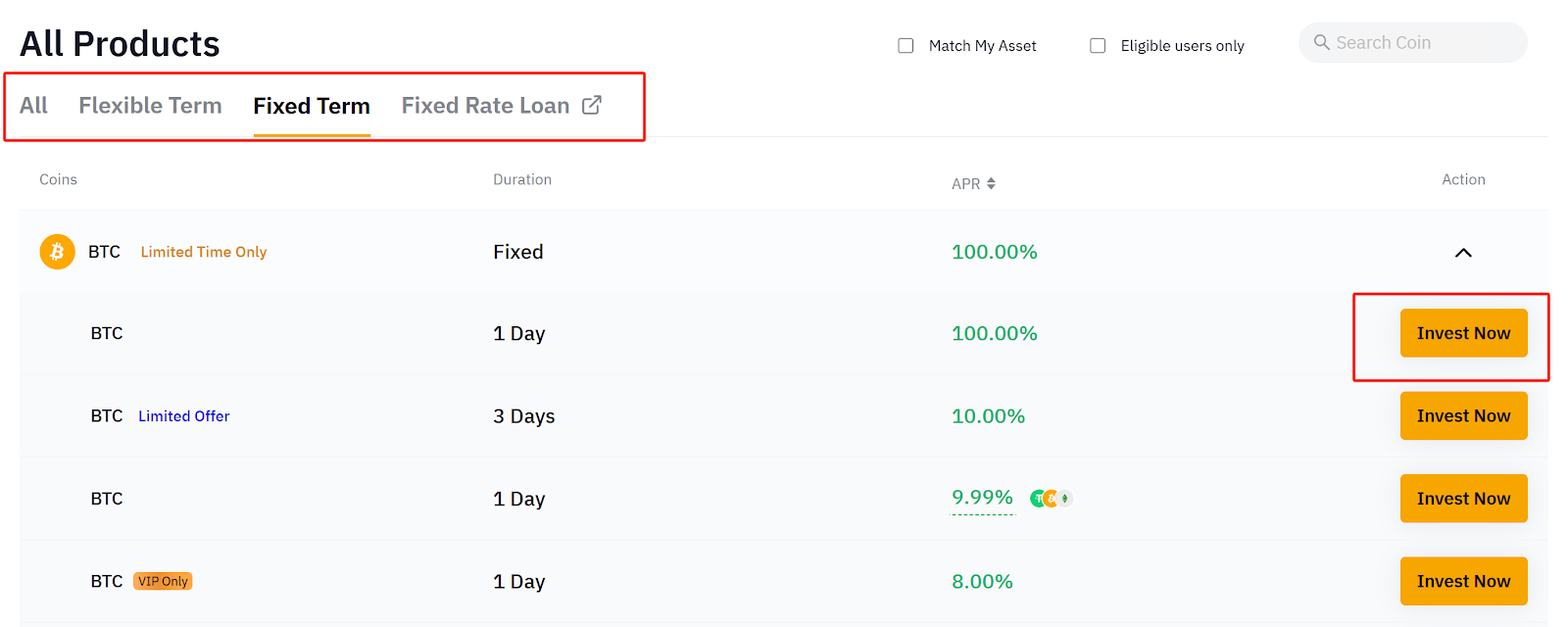 — For Fixed Term products, both the APR and investment duration are locked in at the time of investment. Your APR will remain unchanged throughout the entire term.
