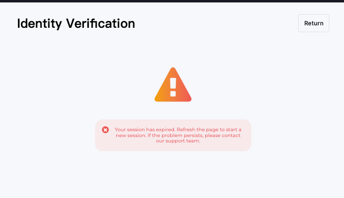 註:如果您多次嘗試後仍無法前往臉部辨識頁面,則提交的文件可能無法滿足要求,或提交次數在短時間內過多。在這種情況下,請在 30 分鐘後重試。如果問題仍未解決,請點擊此處提交案例,聯絡客服。
