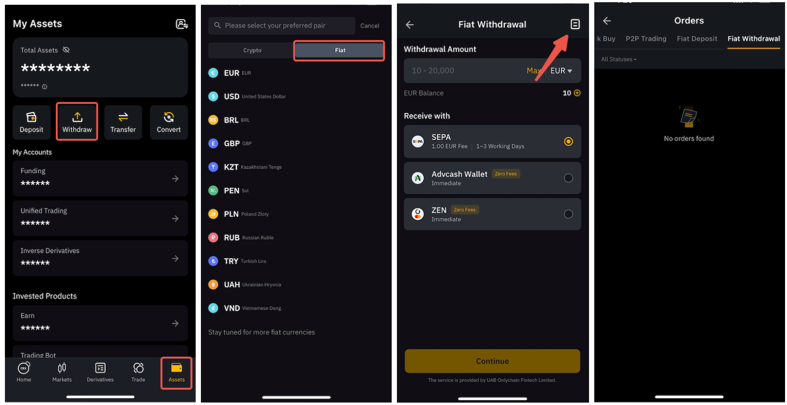 On the App, please go to the Assets tab and tap on Withdraw, then switch to Fiat → select any of the Fiat → tap on the page icon.