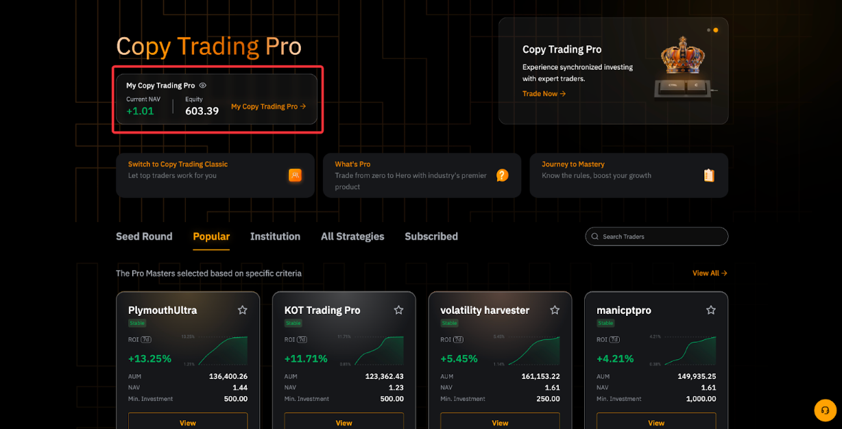 Go to Copy Trading Pro → Pro Master Center. You can access the page by clicking the summary card of your Copy Trading Pro strategies in the top right corner of the product page.