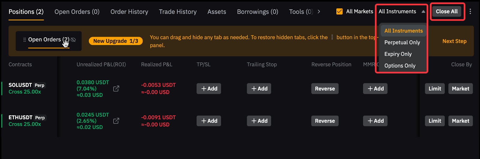 How to Close Your Perpetual & Futures Position