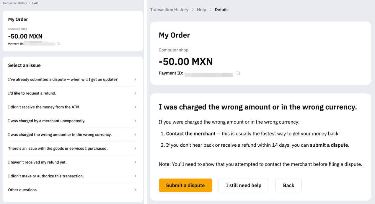 Follow the step-by-step guide below to submit a dispute — whether for an online or offline purchase or an ATM withdrawal.