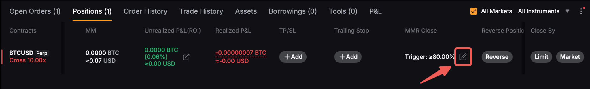Click Add under MMR Close on your position tab. Then, set the Trigger MMR as desired.