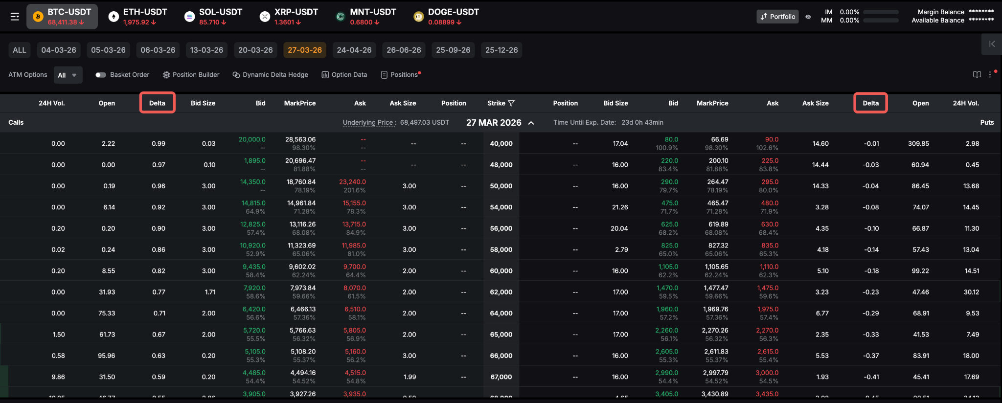 You can see the Delta column on the Option Chain page. This column shows the Delta of each option. The left column is for call options, and the right column is for put options.
