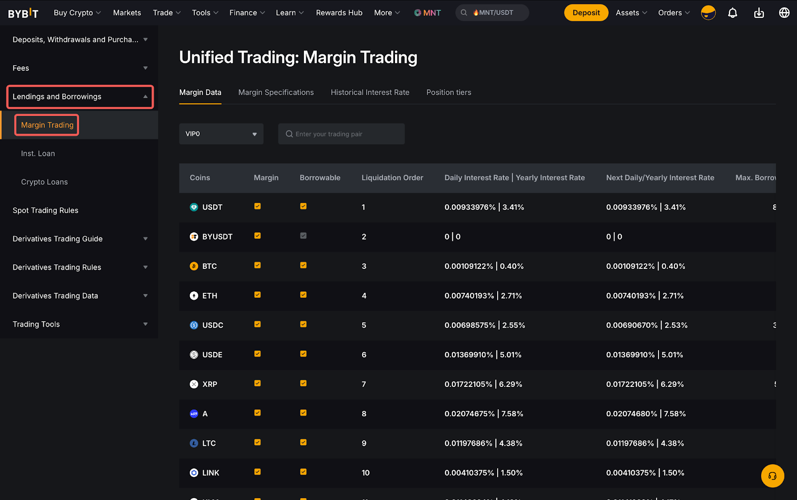 Bybitの統合取引アカウント(UTA)では、幅広いタイプの通貨を担保と借入可能資産としてご利用いただけます。