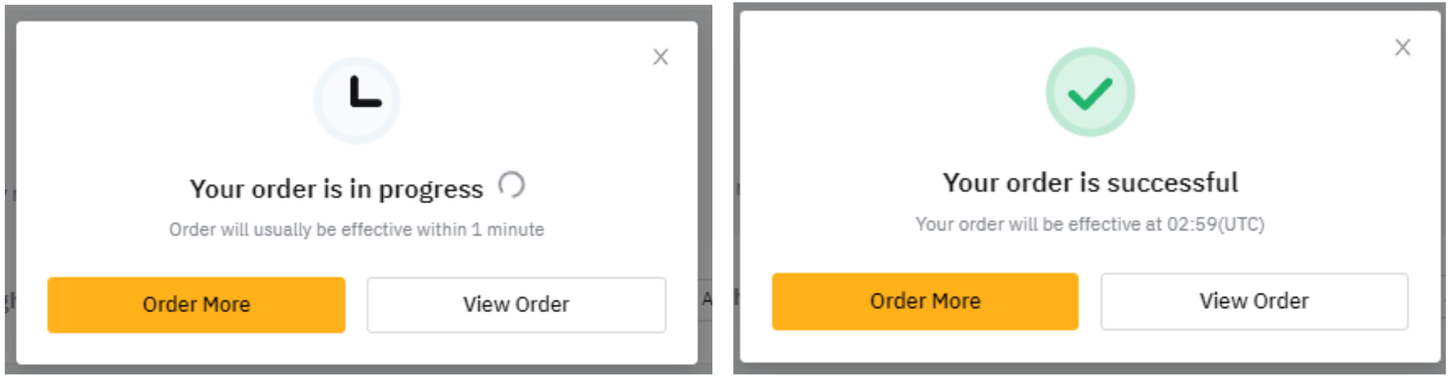 ステップ5:発注処理が行われます。注文ステータスは、注文申請後30~60秒以内に確認できます。注文が確認できるまでお待ちください。有効注文のページで注文の詳細を閲覧できます。注文が正常に完了すると、収益の計算を開始します。