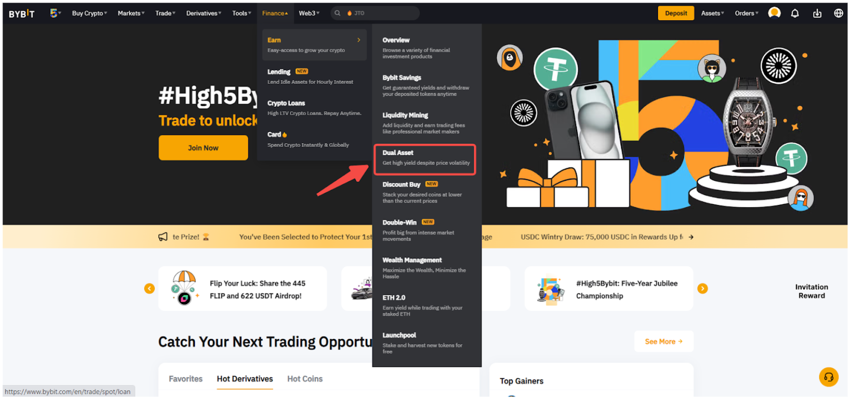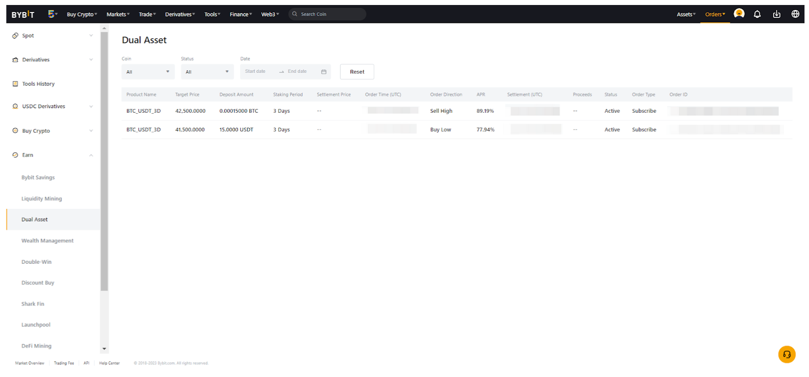 こちらはBybitでデュアル資産投資プランを購読し、閲覧するためのステップバイステップのガイドです。