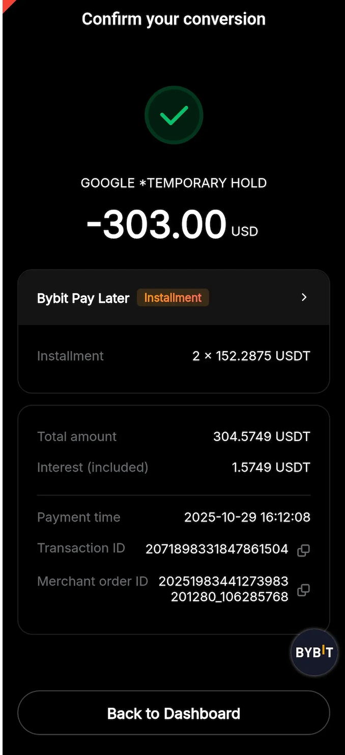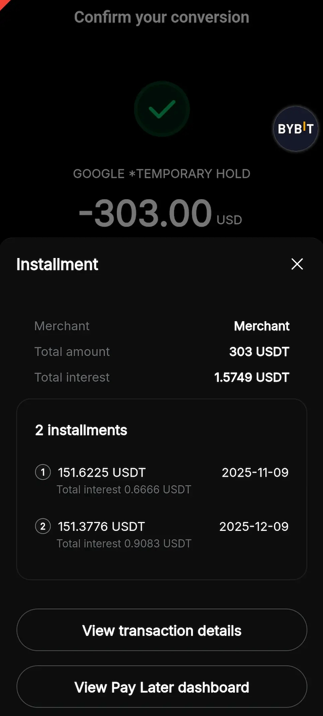 — Bybit Pay Later is currently available only on the Bybit App.
