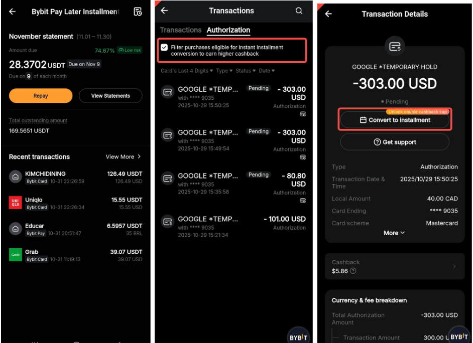 — For more details on how the collateral works, refer to FAQ — Pay Later on Bybit Card.