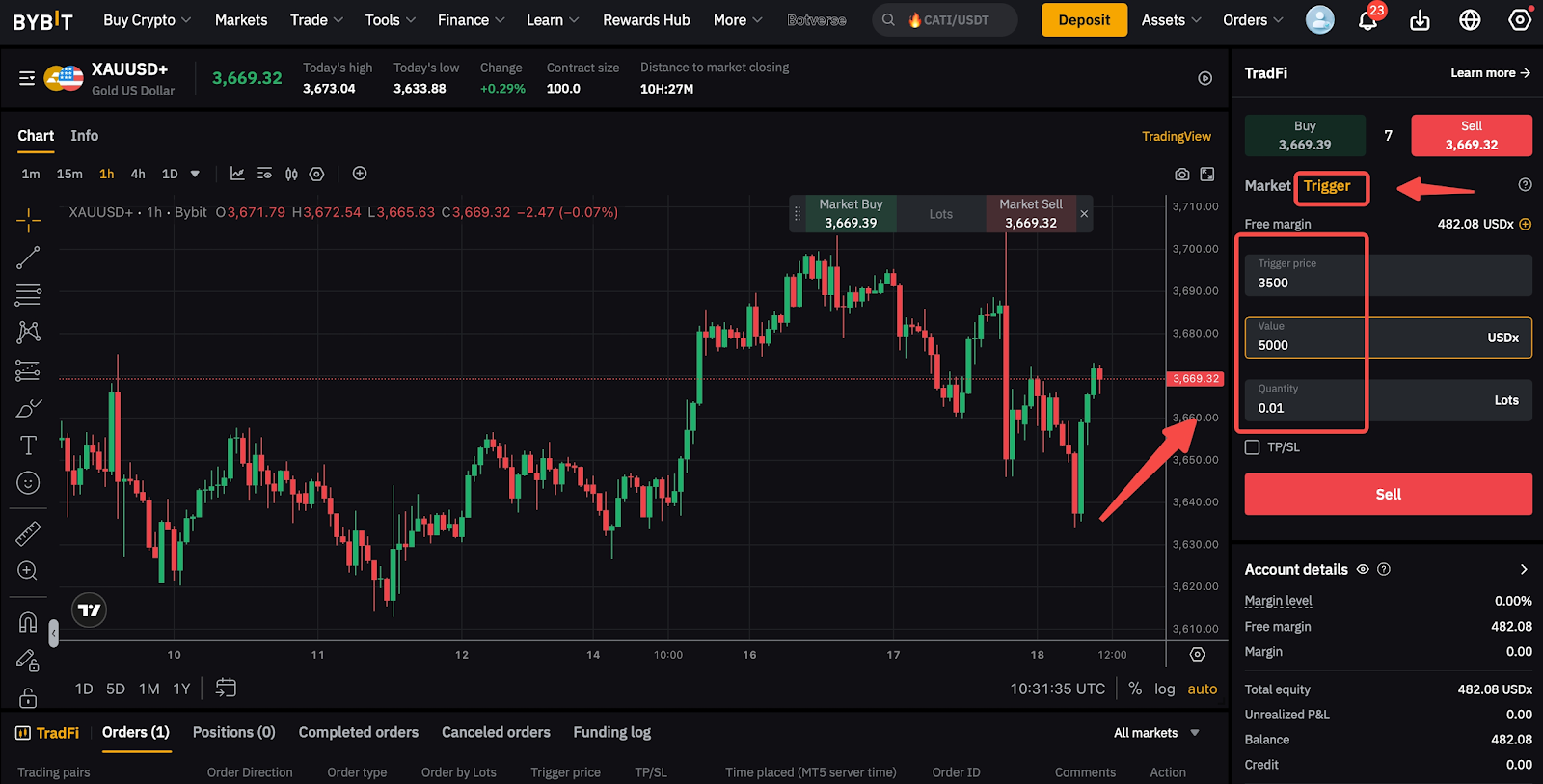 — トレーダーは、注文を行うために、トリガー価格と価格または数量の両方を入力する必要があります。