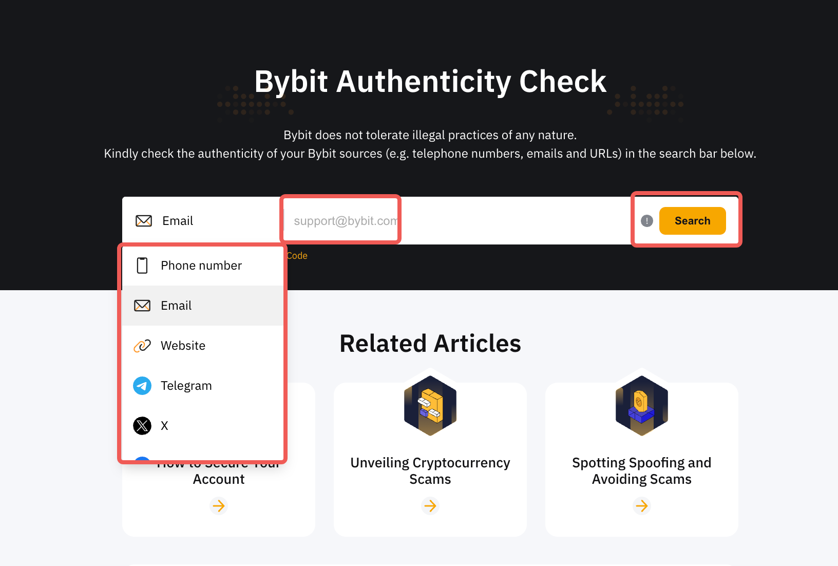 オーセンティシティチェッカーを使用すると、ソースがBybitからのものであるかどうかを簡単に確認できます。チャネルタイプを選択し、詳細を入力するだけで結果が得られます。