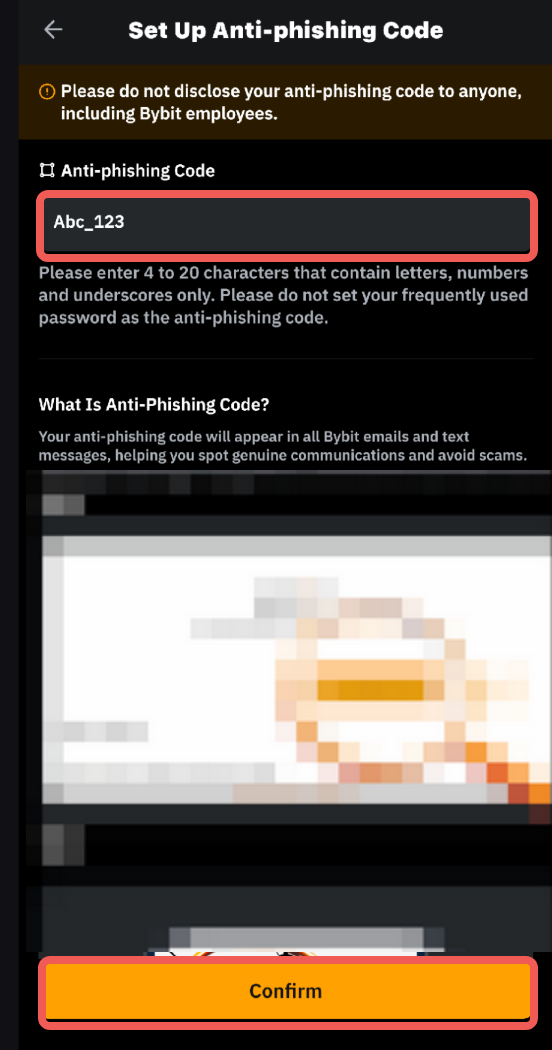 仮想通貨セクターは急速に拡大しており、愛好家、トレーダー、投資家だけでなく、詐欺師やハッカーもこの成長を悪用したいと考えています。フィッシング対策コードは、フィッシング攻撃から利用者を守るために設計された重要なセキュリティ対策です。アンチフィッシングコードは、お客様だけが知っている固有のコードです。設定が完了すると、このコードはBybitからのすべての公式メールSMSメッセージに表示されます。個人認証マークとして機能し、本物のメッセージをフィッシング攻撃と区別します。