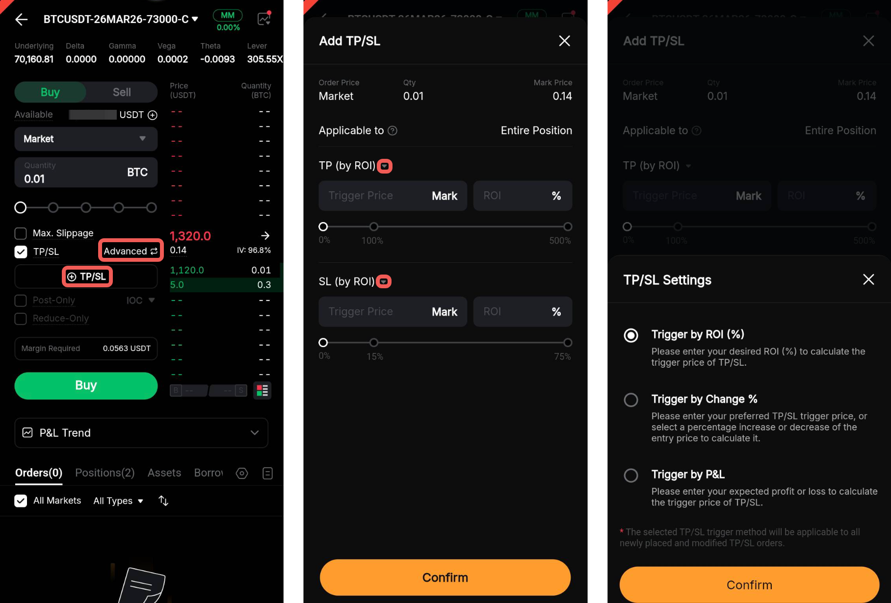 Step 2: Select your preferred TP/SL trigger mode: By ROI (%), By Change (%), or By P&L.