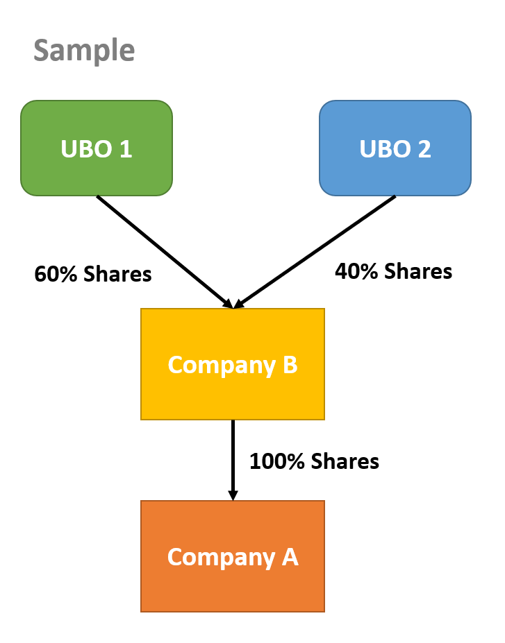 Информация (имя и гражданство) конечного бенефициарного владельца (UBO), владеющего 25% или большей долей в компании. Другая ссылка для подтверждения будет сгенерирована отдельно по электронной почте для UBO, чтобы подтвердить личность.