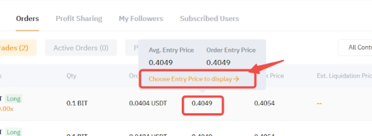 Мастер трейдинга может переключаться между отображением цены ордера или средней цены входа для позиции в Центре Мастера трейдинга → Ордера.
