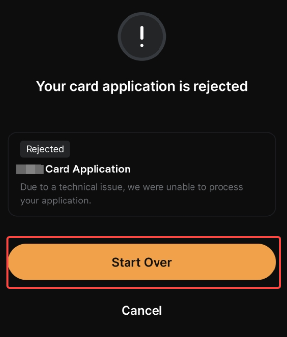 2. Если ваша заявка на карту была отклонена после подачи, вы всегда можете начать заново, подав новую заявку.