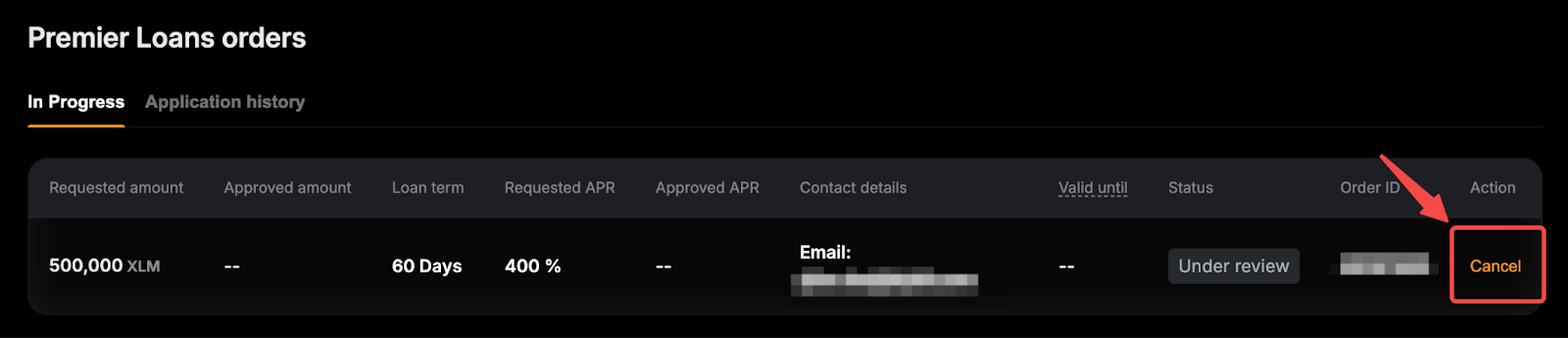 Да, вы можете отменить свой ордер, но только до тех пор, пока он находится в статусе На рассмотрении. Одобренную заявку на Premier Loan больше нельзя отменить.