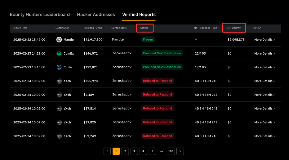 Вознаграждение присуждается только в том случае, если зацепка привела к успешной заморозке средств. Статус заявок и расчётное вознаграждение можно проверить на странице проверенных заявок.
