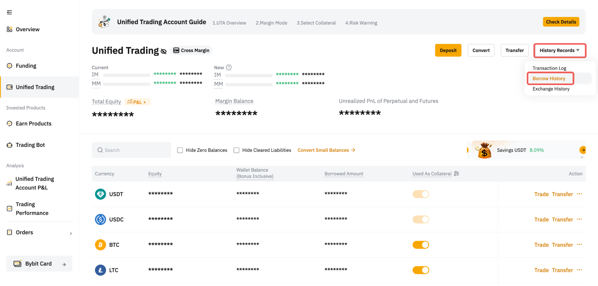 Занимайте средства непосредственно на странице спотовой маржинальной торговли или на странице активов Единого торгового аккаунта (ЕТА). |