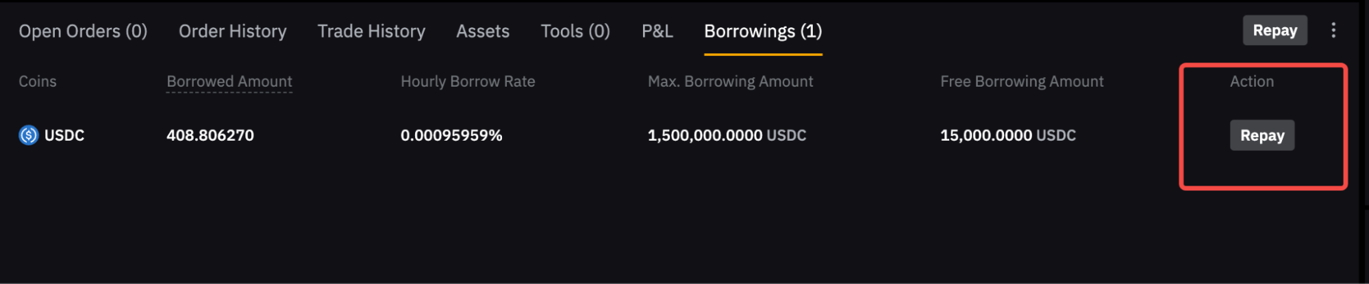 Подробная информация о различиях между автоматическим и ручным займами доступна в статье Как занимать средства для спотовой маржинальной торговли.