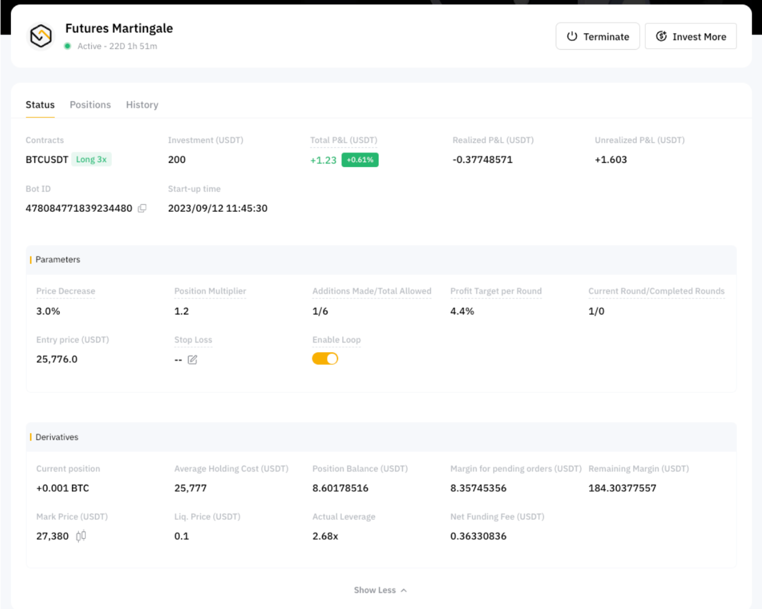 На странице сведений о боте можно найти полную информацию о Фьючерсном Мартингейле, включая настроенные параметры. В дополнение к этим настройкам есть и другие важные сведения, которые следует учитывать.