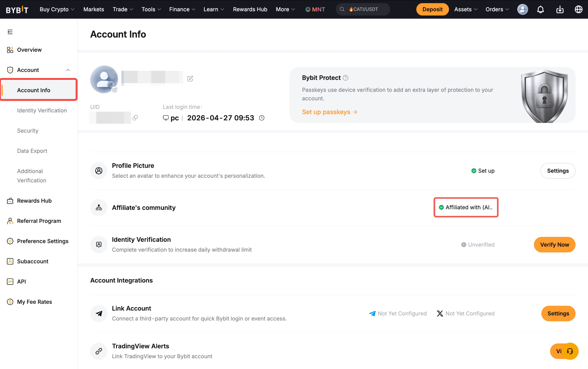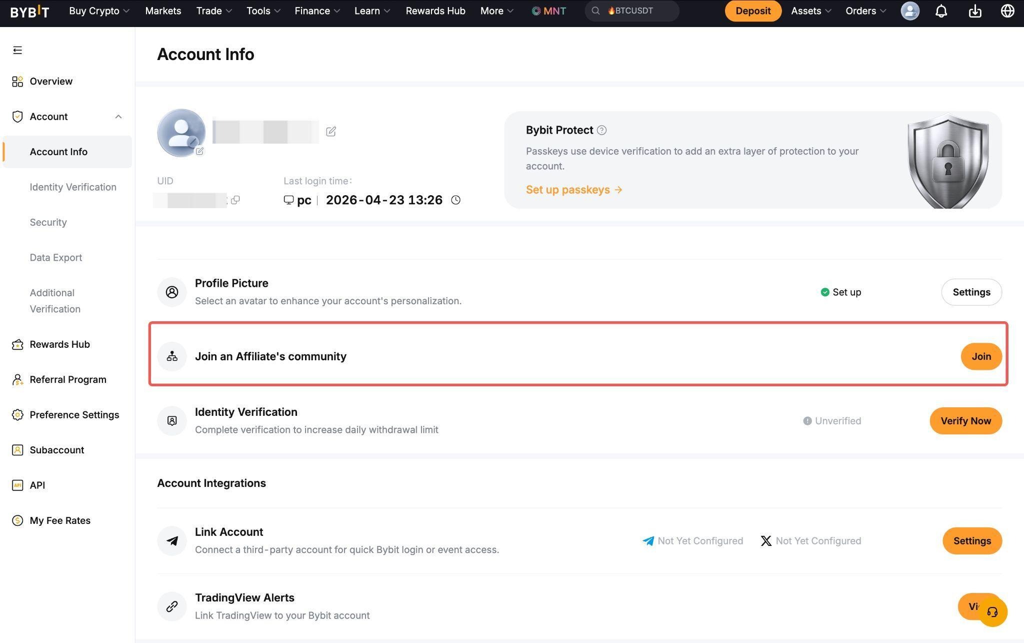 Обратите внимание, что некоторые партнёрские ID могут быть недоступны пользователям на странице «Информация об аккаунте» из-за настроек конфиденциальности партнёров Bybit. Если в этом случае вы хотите определить партнёрский ID, мы рекомендуем вспомнить, где вы изначально зарегистрировались или получили партнёрский код (например, на YouTube, в социальных сетях или на реферальной странице).