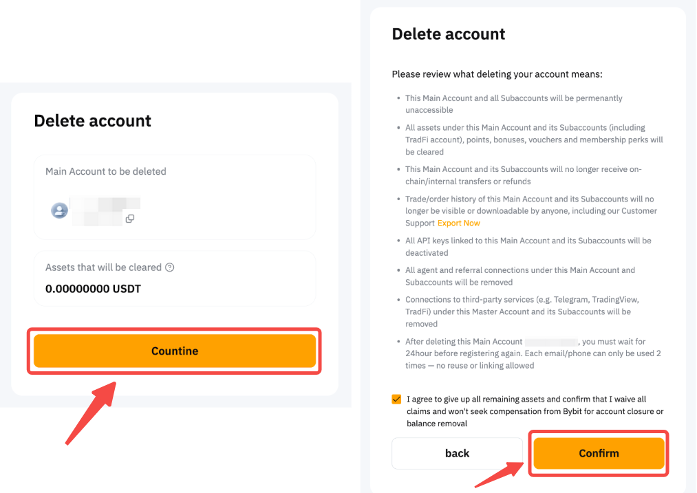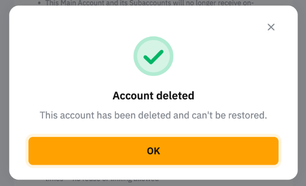 Шаг 2. Проверьте и подтвердите данные аккаунта, включая все связанные субаккаунты и оставшиеся активы. Прежде чем нажать Я знаю, пожалуйста, убедитесь, что понимаете последствия удаления аккаунта.