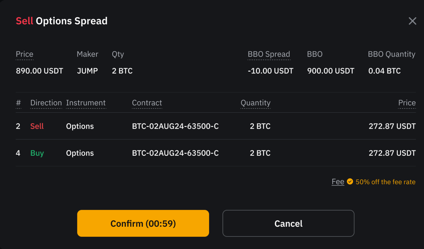 Шаг 3. Появится окно подтверждения. Проверьте данные предложения, включая цену, мейкера и количество. Нажмите Подтвердить, чтобы совершить сделку, или Отмена, чтобы отказаться от сделки.