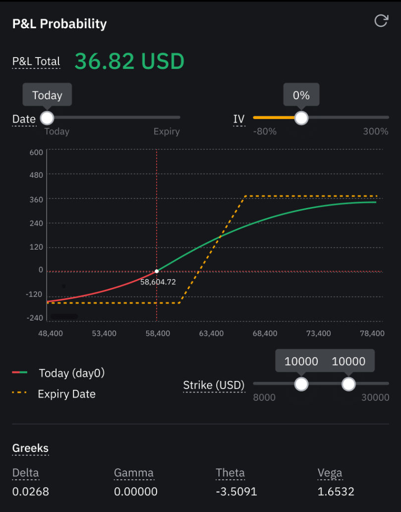 Диаграмма вероятности P&L находится справа. Она дает визуальное представление о потенциальной прибыли и рисках еще до подачи запроса, чтобы принять более обоснованные решения.