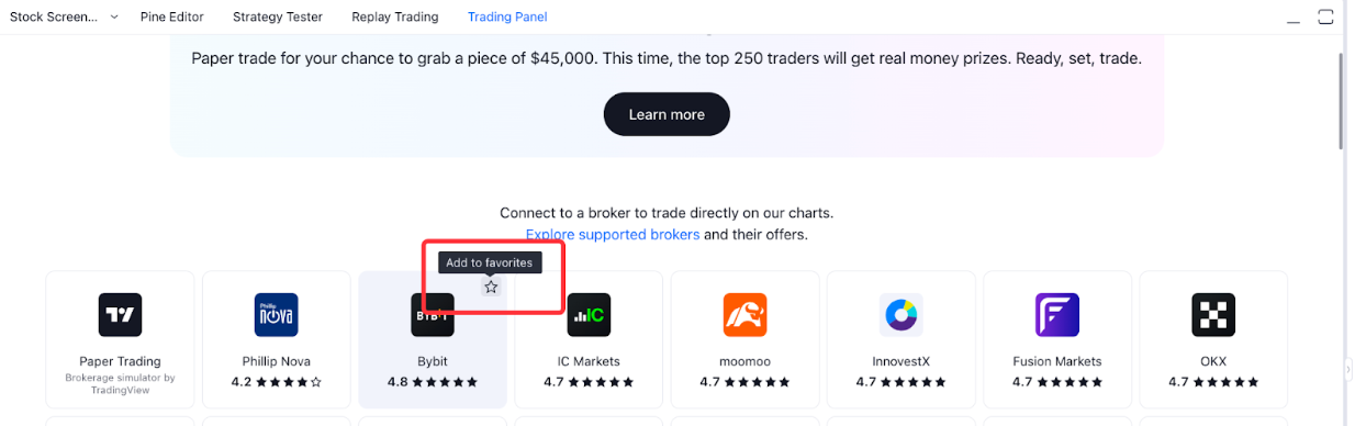 Bybit можно добавить в список Избранное для брокера, что позволит быстро подключиться к Bybit.