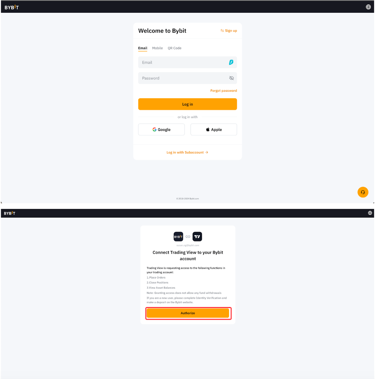 Шаг 4. Введите данные для входа в аккаунт Bybit, нажмите Войти и затем Разрешить.
