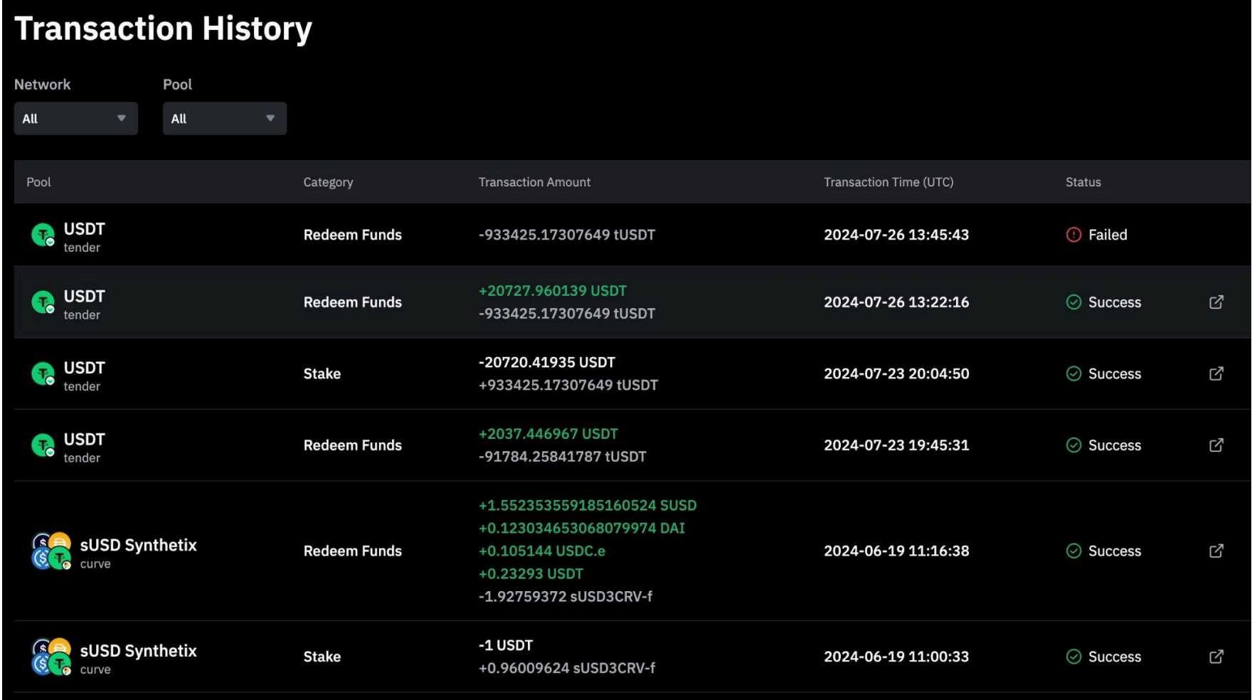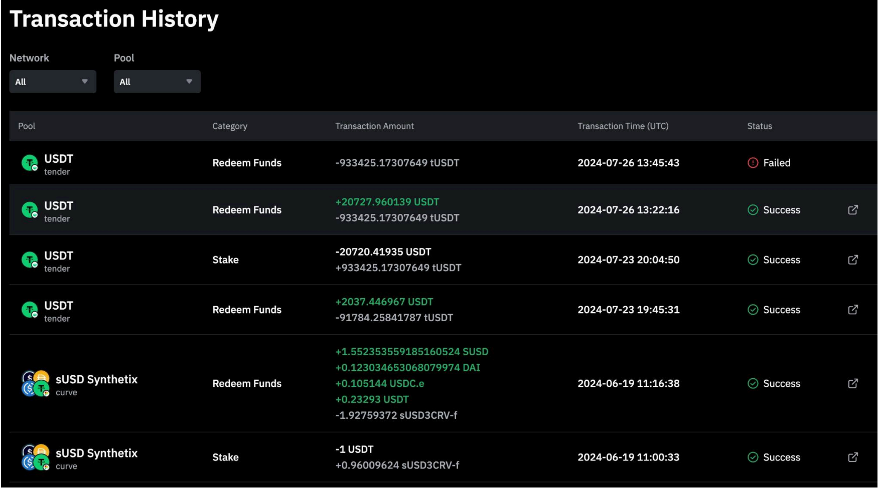 После успешного стейкинга данные транзакции будут отображаться в истории транзакций.