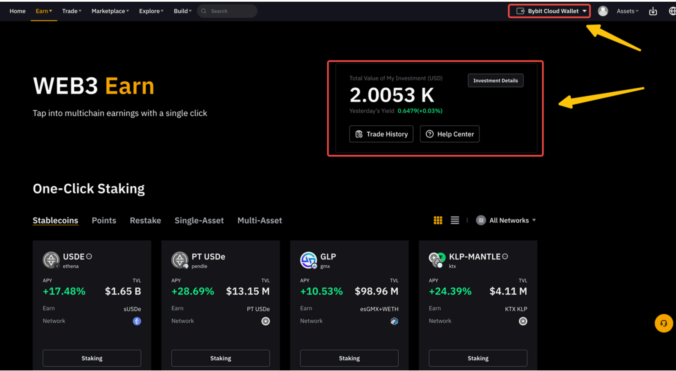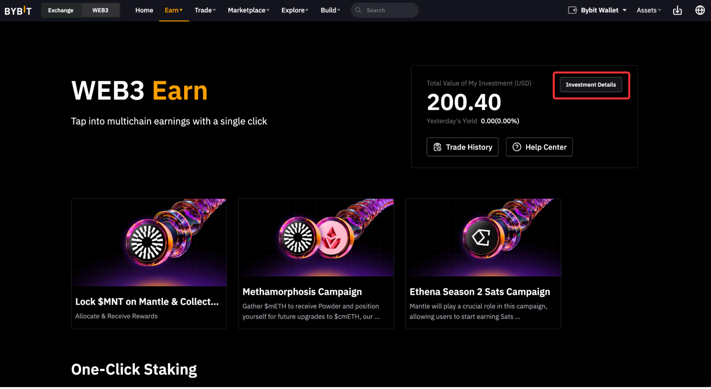 Шаг 1. Перейдите в Кошелек → СтейкингДетали инвестиций.