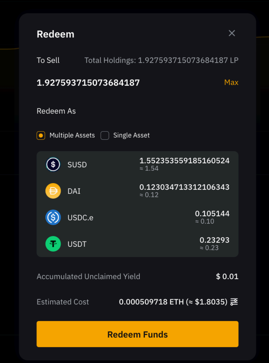 Шаг 3. Во всплывающем окне выберите Один или несколько активов, проверьте детали погашения и нажмите Погасить.