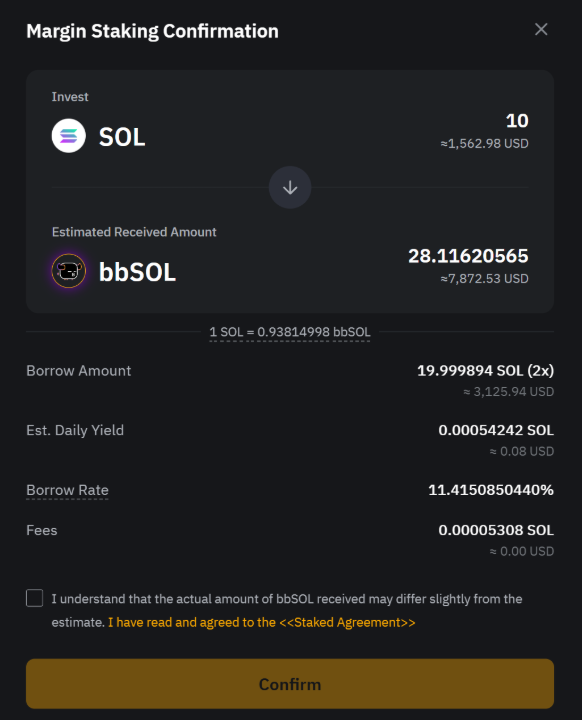— Для ордеров маржинального стейкинга SOL действуют комиссии за стейкинг, вывод и газ. Узнать больше можно в статье FAQ — маржинальный стейкинг SOL.