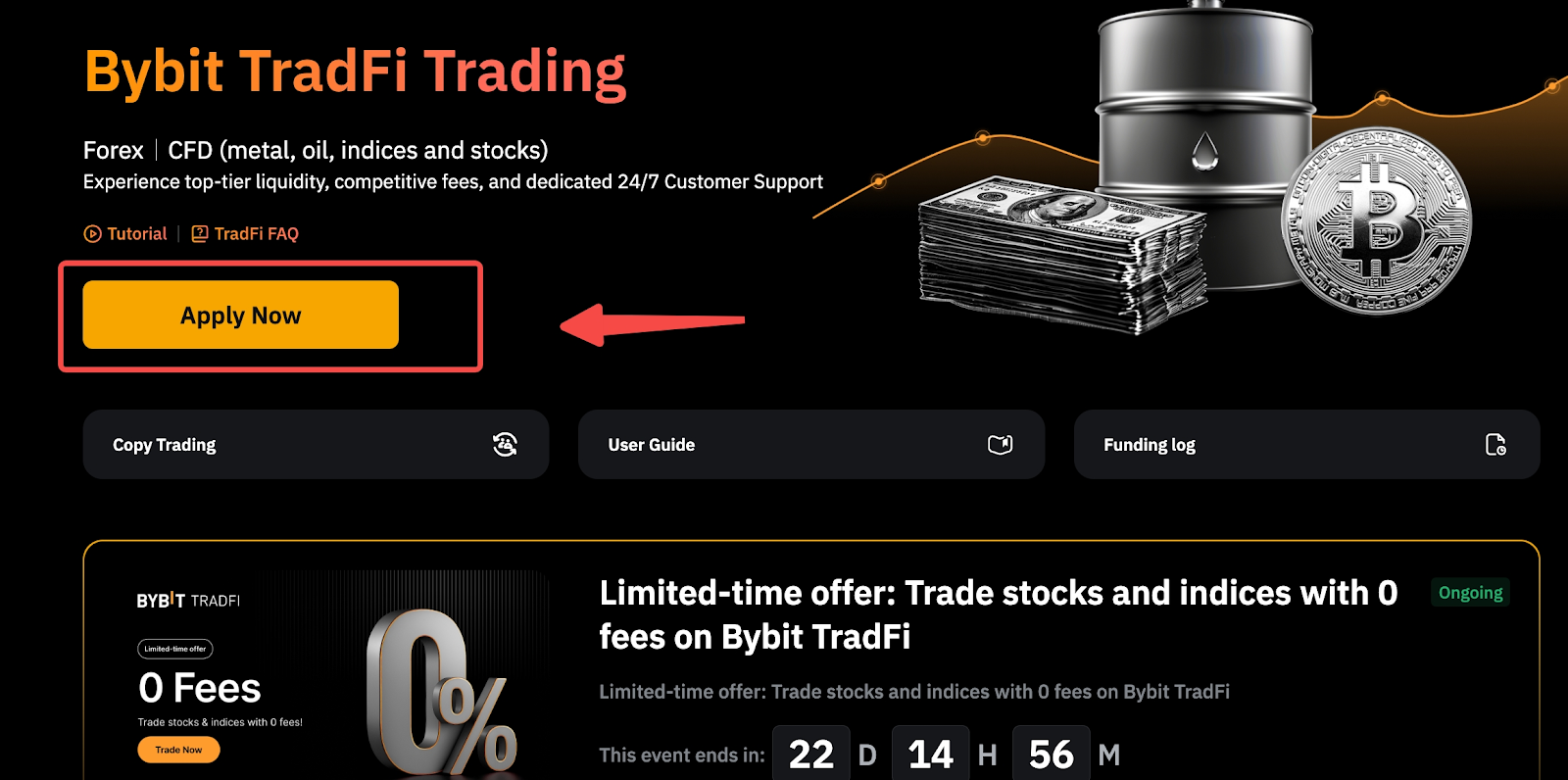 Компания Bybit с радостью представляет наш новый продукт TradFi, который теперь доступен непосредственно на нашем веб-сайте. TradFi позволяет получить доступ к широкому ассортименту CFD-продуктов, включая FX, металлы, индексы, нефть, товары и CFD-продукцию акций США.