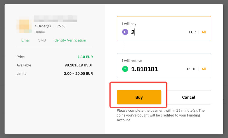 Шаг 2. Введите сумму, которую вы хотите заплатить, или количество монет, которые вы хотите получить, и нажмите Купить, чтобы продолжить.