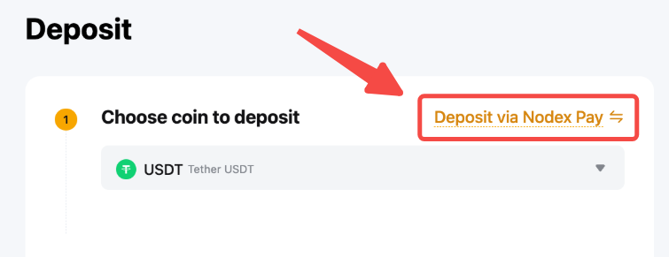 Шаг 2. Выберите USDT и переключитесь на способ Nodex Pay депозита.