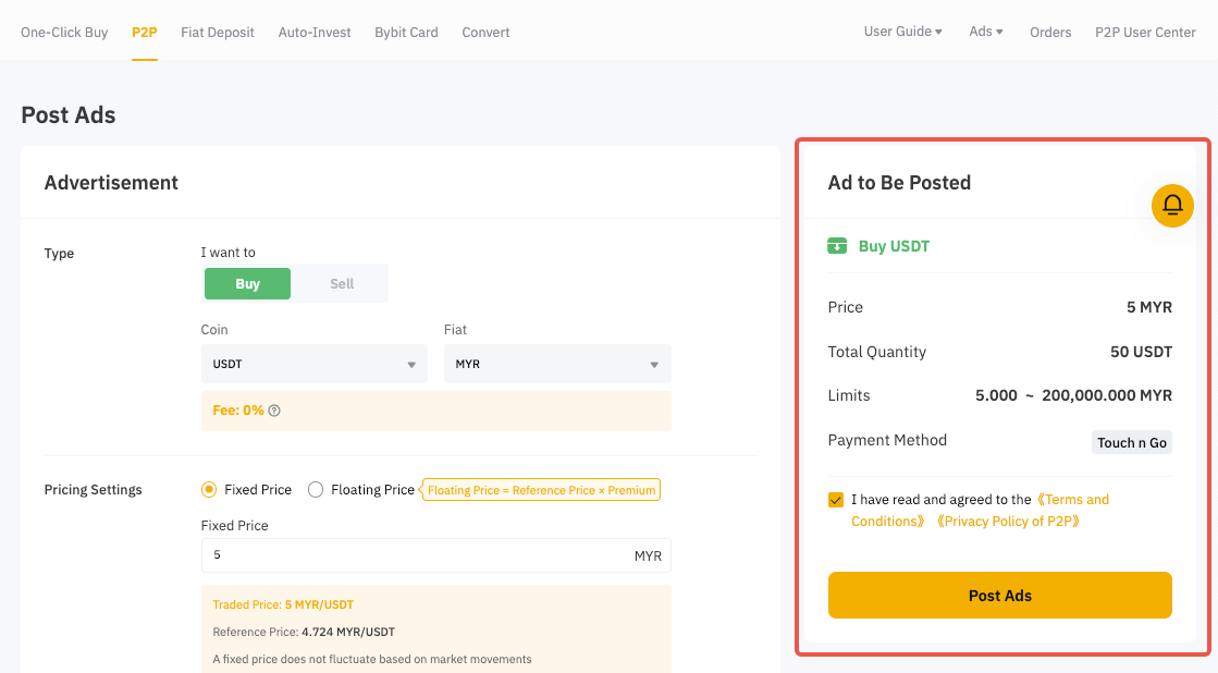 Представляем пошаговое руководство, которое поможет вам, как мерчанту, опубликовать ваше первое P2P- объявление на Bybit.