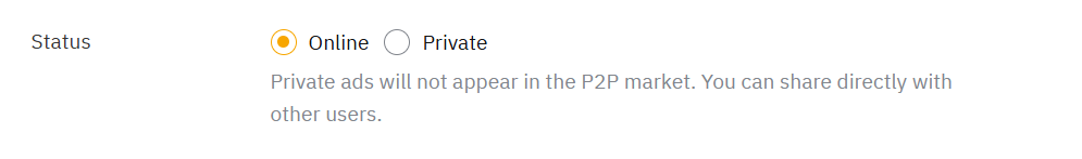 2. Непубличная: Объявления не будут отображаться на странице P2P-объявлений и доступны только трейдерам с QR-кодом или URL-ссылкой.