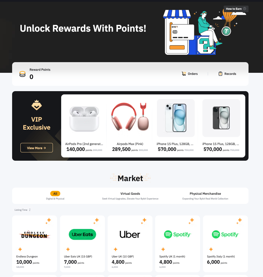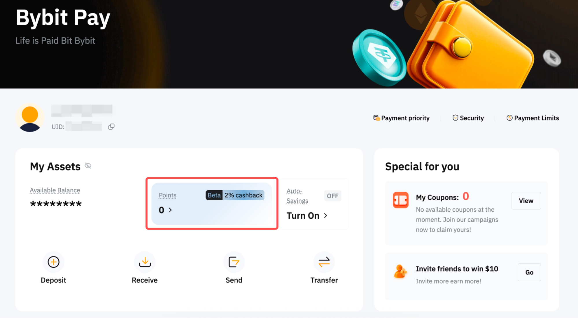 Шаг 1. Перейдите в раздел Bybit Pay и нажмите Просмотреть награды в разделе «Баллы».