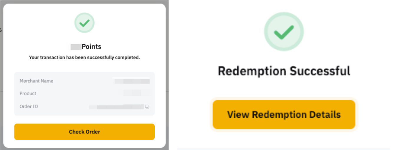 После успешного погашения нажмите Проверить ордер и Посмотреть ордер на погашение для перехода в Бонусный центр.