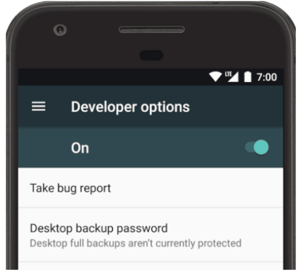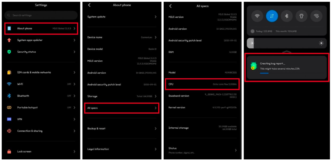 Чтобы получить отчёт о багах прямо с устройства, необходимо выполнить следующие шаги: