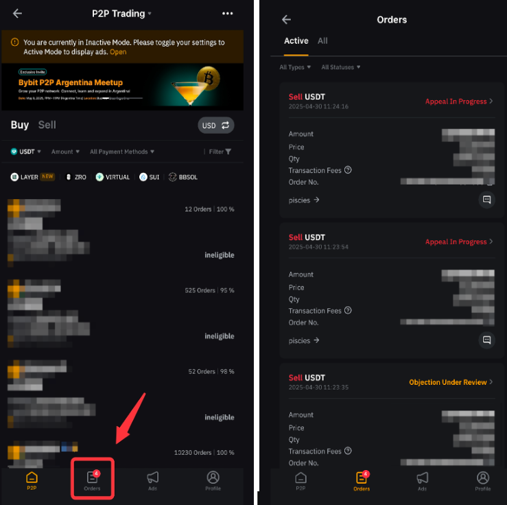2) Если вы получили уведомление о том, что платёж выполнен, но ещё не получили платёж, можно подать запрос на отмену ордера для проверки покупателем. Свяжитесь с покупателем в чате ордера, прежде чем нажать Спор по ордеру? для рассмотрения апелляции.
