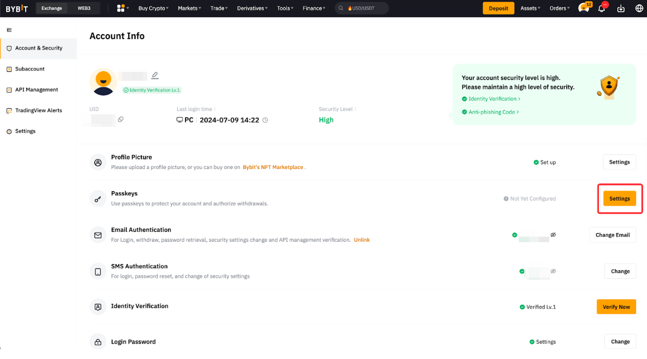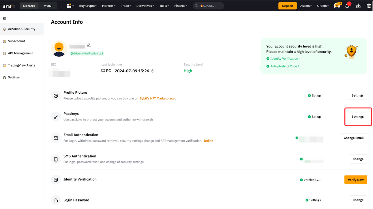 Как настроить ключ доступа Passkey и управлять им на Bybit